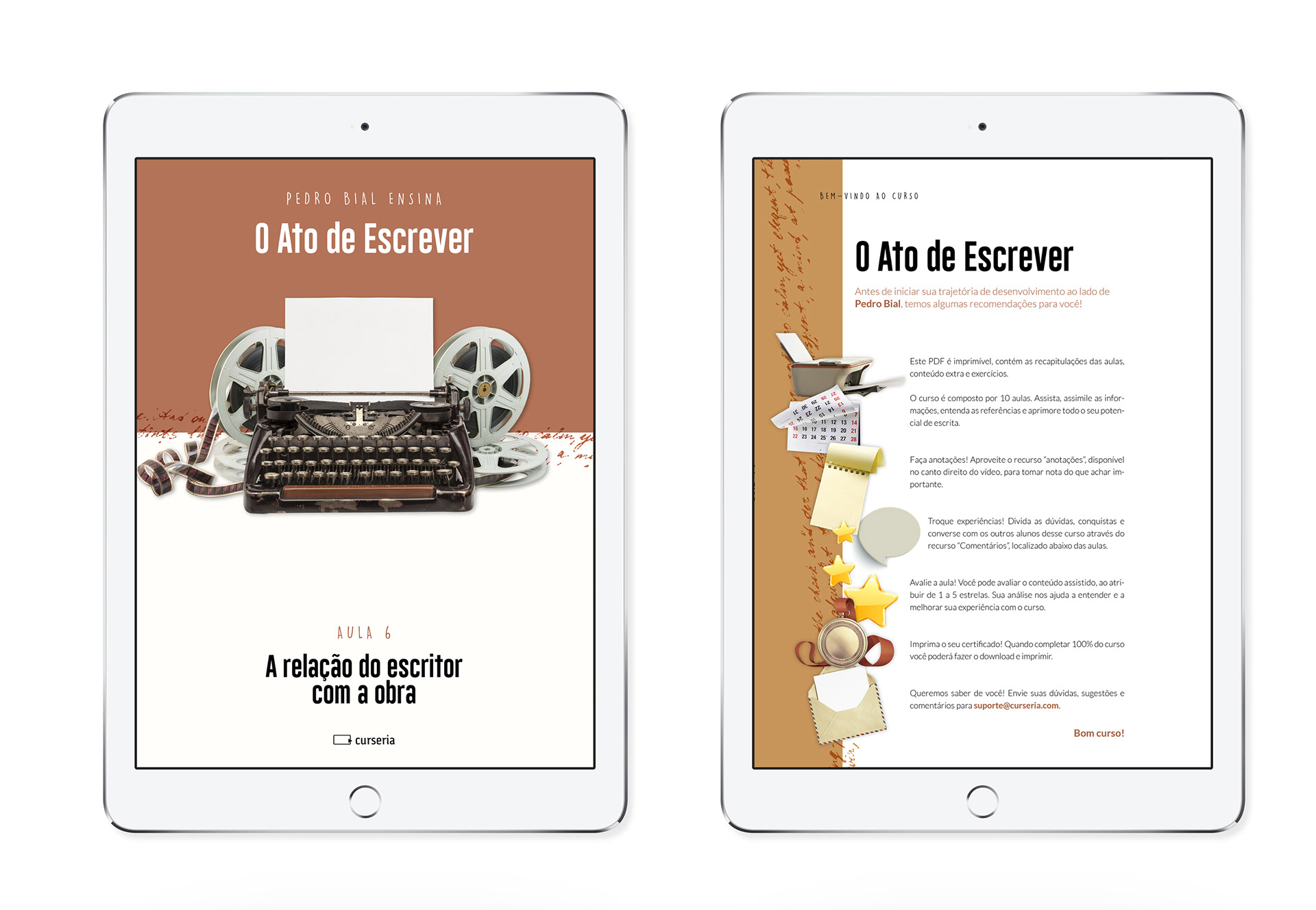 Fomos convidados por eles a compor o Material de Apoio ao Aluno, parte do curso de escrita criativa: O Ato de Escrever. Nós desenvolvemos o projeto gráfico, edição de arte e diagramação, a partir de um conceito e estética fornecido pelo cliente.