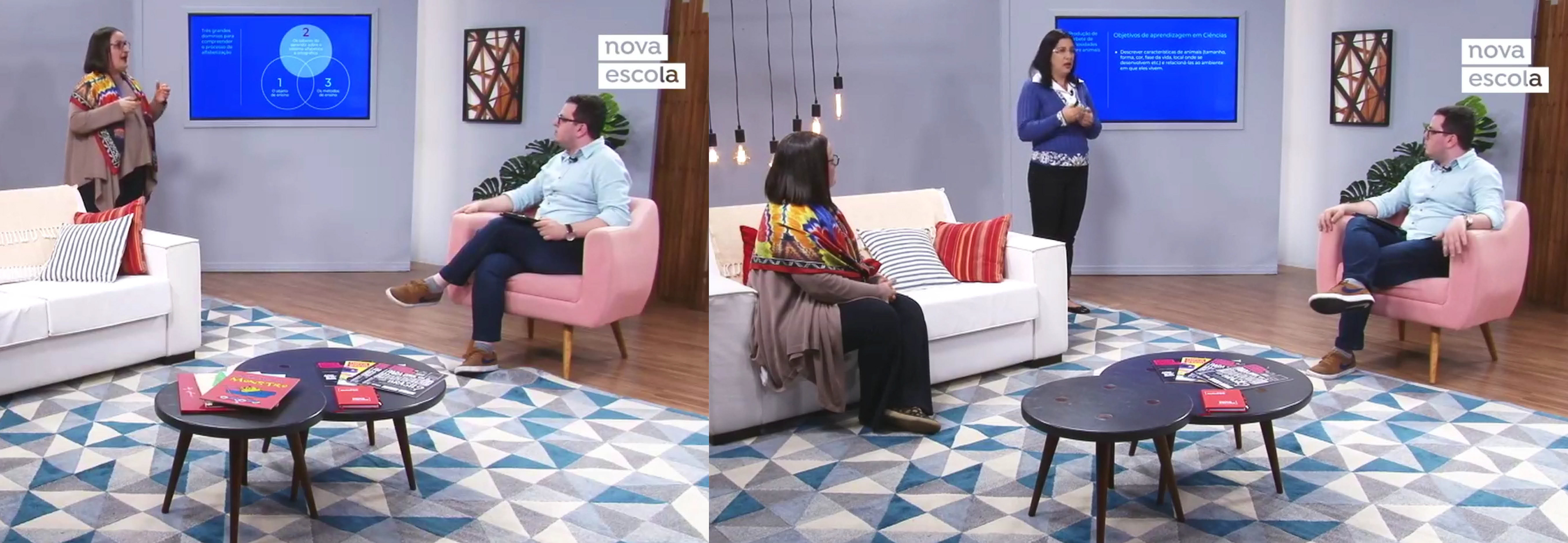 Logo abaixo, imagens das telas de apresentação que foram utilizadas nos cursos on-line: "Alfabetização na prática: tudo é uma questão de método?" e "Planejamento dos espaços da Educação Infantil: como organizar ateliês".