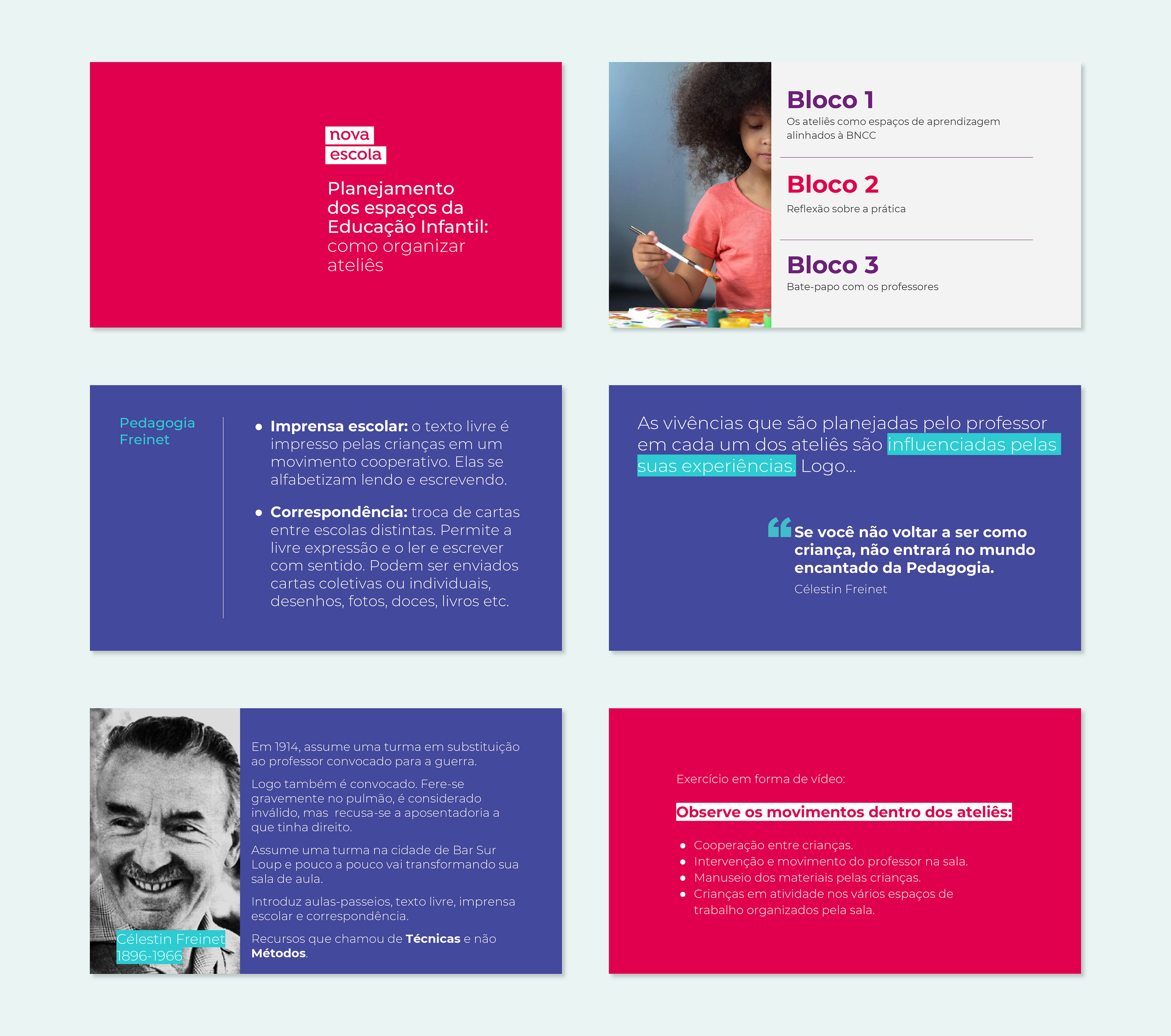 Aqui indexamos três projetos que desenvolvemos para a Nova Escola. As primeiras imagens são do projeto gráfico e a diagramação do e-book "O Nome próprio da Alfabetização – Um especial sobre o primeiro passo para ensinar a ler e escrever."